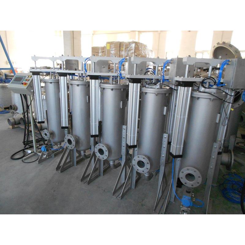 This fully automatic system uses a pneumatically or electrically driven Teflon scraping disc to continuously clean the inner surface of the vertically slotted wedge-wire element, ensuring stable filtration without interruption.